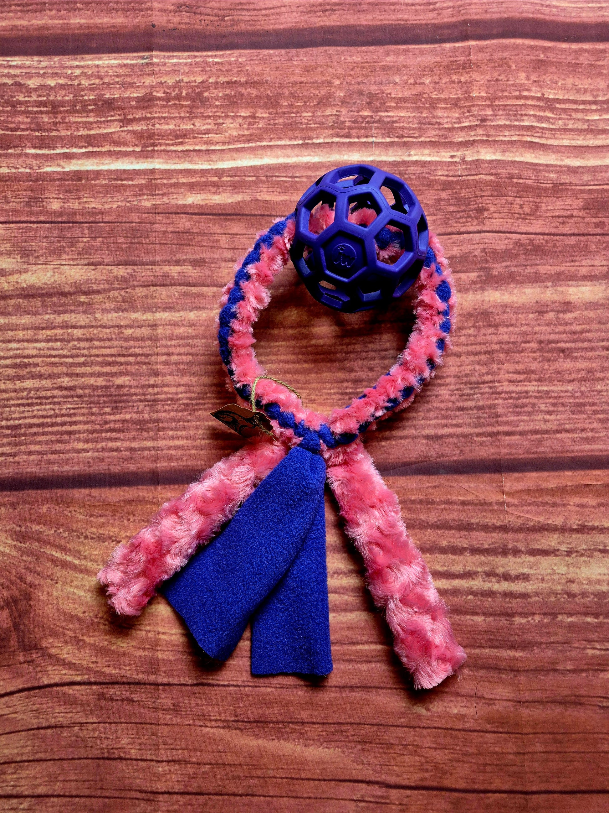 A small purple hol-ee roller on a 6" tug ring brings your tugging session to a whole new level. It's weight makes it easy to reward from a distance.